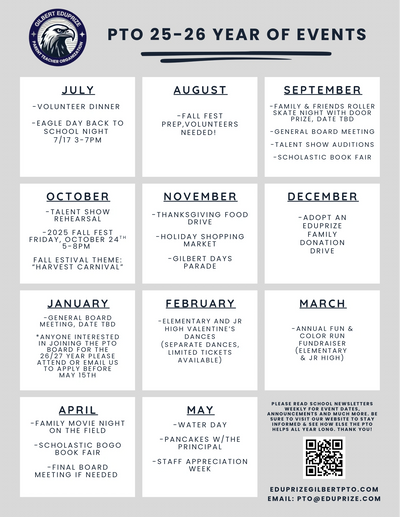 The calendar does not include all the ways we give back to the students as enrichments. Additional information will be posted as they happen. Some events may be subject to change depending on planning, budget, volunteers etc. We appreciate your support!
